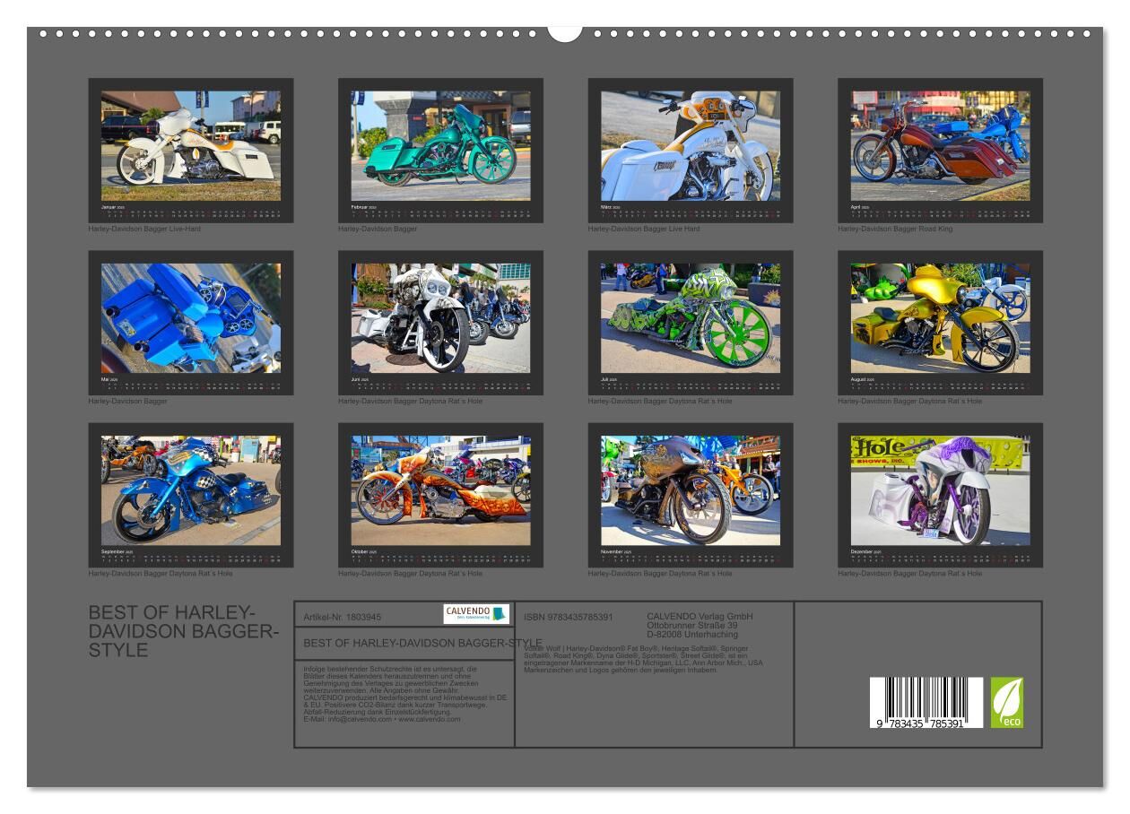 BEST OF HARLEY-DAVIDSON BAGGER-STYLE (hochwertiger Premium Wandkalender 2025 DIN A2 quer), Kunstdruck in Hochglanz
