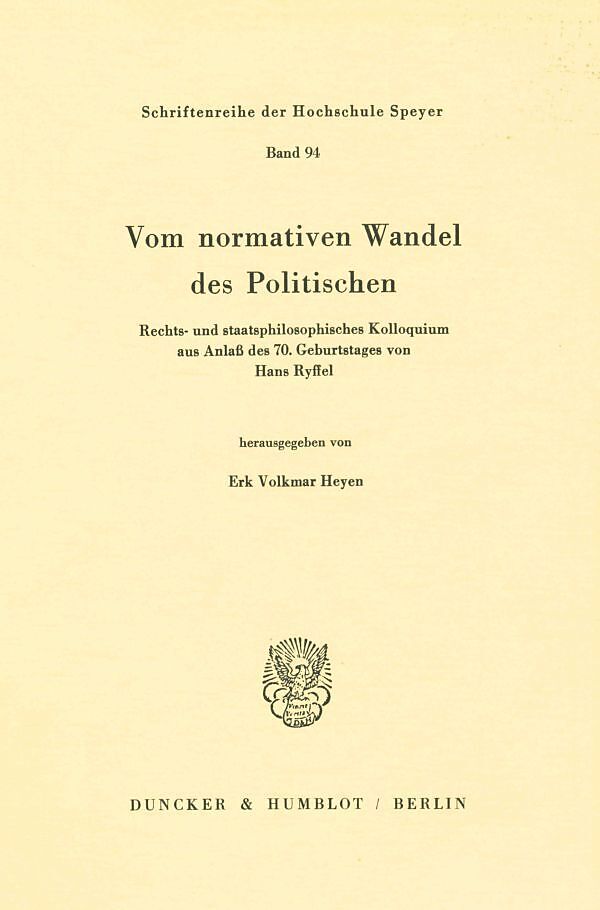 Inhalt D. Willoweit Von der alten deutschen Freiheit. Zur verfassungsgeschichtlichen Bedeutung der Tacitus-Rezeption E. V. Heyen Geschichtsphilosophie oder Ethik? Zur Interpretation des "Übergangs von vorgegebener zu aufgegebener Normativität" in Hans Ryffels ...