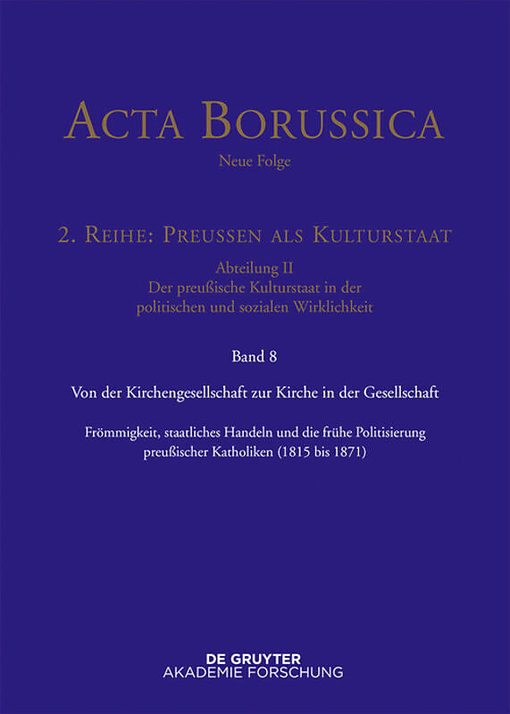 Between 1815 and 1871, Prussian Catholicism became increasingly politicized. This shift is evidenced by the forms of piety manifested by many Catholics and their opposition to government policies that interfered with their religious life. At the same time, th...