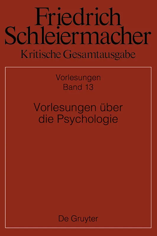 This book is published as the 13 th volume of the lecture section within the critical edition of the complete works of Schleiermacher. For each series of lectures on psychology from the summer semesters 1818, 1821, 1830 and the winter semester 1833/34, it con...