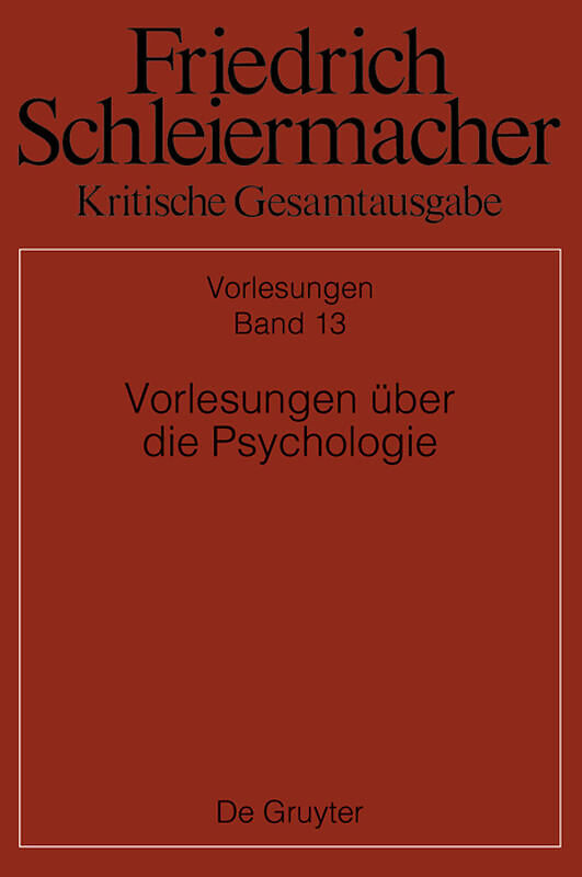 This book is published as the 13th volume of the lecture section within the critical edition of the complete works of Schleiermacher. For each series of lectures on psychology from the summer semesters 1818, 1821, 1830 and the winter semester 1833/34, it cont...