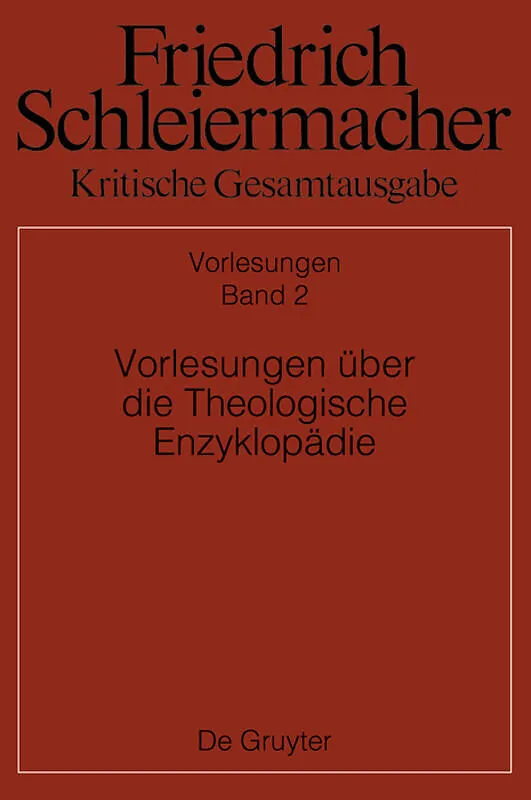 The volume documents Friedrich Schleiermacher's (17681834) lectures on the Theological Encyclopedia based on lecture transcripts from 181617 and 183132. They formed the basis for his textbook A Brief Account of Theological Studies , published in 1811 and then...