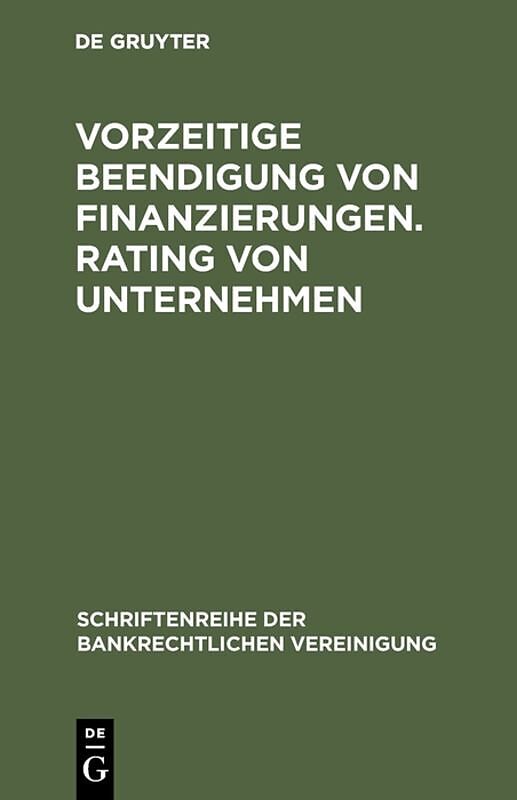 Keine ausführliche Beschreibung für "Vorzeitige Beendigung von Finanzierungen. Rating von Unternehmen" verfügbar. Inhalt Frontmatter -- Vorwort -- Inhaltsverzeichnis -- I. Abteilung: Rechtsfragen der vorzeitigen Beendigung von Finanzierungen Leitung:...