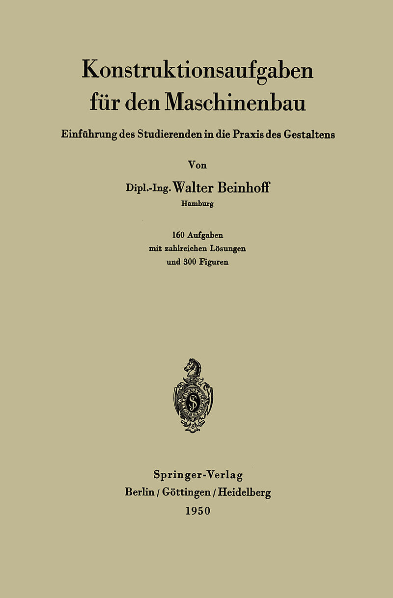 Aufgabe.- 1. Büchse, Führungsplatte und Wellenstück mit Gleitfeder.- 2. Gelenkstück.- 3. Schraubenverbindungen und Kurbelzapfen.- 4. Führungsplatte, Flansch und Hutmutter.- 5. Prismenstück und Untersatz.- 6. Verkleidungswinkel und Welle mit exzentrischem Zapfen.- 7. Schieber.- 8. Lümmel mit Hals- und Spurlager.- 9. Bohrknarre.- 10. Kohlenschütte.- 11. Leichtmetall-Bauteil.- 12. Rohrleitung.- 13. Verschiedene Gegenstände.- 14. Schraubenverbindungen und Lager.- 15. Flanschenrohr, Lagerbock und Hebeöse.- 16. Säulenklemme.- 17. Stößel in Führung.- 18. Ölkelch..- 19. Gelenkverbindung.- 20. Gußeiserne Säule auf Untersatz, Stangenkopf, Lagerschale und Fuß eines Gußstückes.- 21. Stopfbüchse.- 22. Ventilspindel.- 23. Schraubenverbindung.- 24. Stangenkopf.- 25. Überwurfmuttern.- 26. Riemenscheibennabe.- 27. Riemenscheibennaben mit Nasenkeilen.- 28. Spannpatrone.- 29. Zylinder mit Deckel.- 30. Festspannung einer Schraube.- 31. Werkstückstütze und Vorrichtungsfüße.- 32. Normalprofile.- 33. Welle I.- 34. Welle II.- 35. Kesselstuhl.- 36. Abschlußorgan für eine Rohrleitung.- 37. Feststellvorrichtung.- 38. Umwandlung von drehender in geradlinige Bewegung.- 39. Rundungsdreheinrichtung.- 40. Wandabsteifung, Bolzen und Stirnrädergetriebe.- 41. Bohrbüchse, Kopfschraube und Transportöse.- 42. Schlittenführung.- 43. Stütze für Handleiste.- 44. Spannschloß.- 45. Feuerleiter.- 46. Zweiteiliger Stellring.- 47. Zentrierwinkel.- 48. Bolzenlagerung.- 49. Granitblock.- 50. Krümmer mit Fuß und Rohrlager.- 51. Rohrkrümmer.- 52. Durchgangshahn.- 53. Ventilspindel mit Kegel.- 54. Gießerei-Formkasten.- 55. Batterie von Formkästen.- 56. Schmelztiegel.- 57. Dreharbeit zwischen den Spitzen.- 58. Rohrstutzen.- 59. Schalenkupplung.- 60. Ankerplatte zumMaschinenfundament.- 61. Flaschenschraubstock.- 62. Parallelschraubstock.- 63. Spannklaue zum Schnellspannschraubstock.- 64. Hahngehäuse.- 65. Stopfbüchshahn.- 66. Kochkessel.- 67. Träger und Welle.- 68. Kolben einer Flügelpumpe.- 69. Gelenkverbindung.- 70. Motorkolben.- 71. Schwungrad.- 72. Kurbelwelle mit Gegengewichten.- 73. Ausrichtvorrichtung.- 74. Lagerschild..- 75. Bolzen in Führung.- 76. Aufspannplatte.- 77. Träger auf Säulenkopf.- 78. Wasserbehälter.- 79. Profilstahlverbindungen.- 80. Stützen auf Grundplatte.- 81. Trägerverbindung.- 82. Stützenfuß.- 83. Dachbinder für eine Halle 52?.- 84. SchifEsaußenhaut.- 85. Ziegelwagen.- 86. Kasten und Einzelheiten zum Schnappschloß.- 87. Türschloß.- 88. Messerkopf (Fräser).- 89. Fliegender Drehdorn. Geschlitzte Spannbüchse.- 90. Zweibackenfutter.- 91. Rohrkrümmer.- 92. Auspujffkrümmer.- 93. Kranlaufrad.- 94. Drehbankfuß.- 95. Drehbankbett.- 96. Supportschlitten.- 97. Gehäuse mit längsbeweglicher Spindel.- 98. Bohrerspitze aus Schnellstahl.- 99. Nute in Welle. Drehteller.- 100. Nutenplatte.- 101. Türband.- 102. Kupplungskegel.- 103. GleitmufPe.- 104. Einströmhebel.- 105. Gelenkkupplung.- 106. Parallelreißer.- 107. Fenstersprossenkreuz.- 108. Flachstahlverbindung.- 109. Ringbiegevorrichtung.- 110. Kreisschneider für Glasscheiben.- 111. Lampenhalter.- 112. Winden-Seiltrommel und Zahnrad.- 113. Stufenscheibe mit Vorgelegezahnrad.- 114. Kegelrädergetriebe.- 115. Kugelgelenk für ein Stativ.- 116. Schloßriegel.- 117. Ölbremse.- 118. Bohrmaschine.- 119. Bohrknarre.- 120. Absperrschieber.- 121. Laufkatze.- 122. Schraubenrädergetriebe.- 123. Schmjedeteile I.- 124. Schmiedeteile II.- 125. Spannschloß.- 126. Verbindungsstück, Schleifringkörper, Aufhängevorrichtung und Fußventil (Umstellung aufSchweißkonstruktion).- 127. Doppelkegelkupplung.- 128. Kesselboden mit Mannloch.- 129. Winkel zweier Ebenen an der Ecke eines Ofenherdes.- 130. Prisma mit schräger Nute 83?.- 131. Schraubenwinde.- 132. Kegeldrehen.- 133. Bahn einer Fräserschneide. Profil eines Rundstahls.- 134. Drehstahl.- 135. Support-Mutterschloß.- 136. Differentialschraube.- 137. Drehwerkzeug-Feineinstellung.- 138. Nabenabziehvorrichtung.- 139. Spindelkasten.- 140. Rohrkrümmer, T-Stück und Ventilgehäuse.- 141. SchleTfsteinbock und Gefäßecke.- 142. Einstellbares Windeisen.- 143. Messingbüchse.- 144. Bohrvorrichtung für Ringmutter.- 145. Bohrvorrichtung für eine Paßfeder.- 146. Winkelhebel.- 147. Gleitstück und Verbindungsstück.- 148. Folgeschnitt für geschlitzte Unterlegscheiben.- 149. Feinbewegungen.- 150. Leiste und Riemenscheibe.- 151. Verstellbare Reibahle und Rohrwalze.- 152. Klemmstück.- 153. Abreißzündung.- 154. Planscheibe.- 155. Lagerbock.- 156. Schneckentrieb.- 157. Wandwinde.- 158. Bockwinde.- 159. Werkzeuge für einen gestülpten Blechring.- 160. Reitstock.