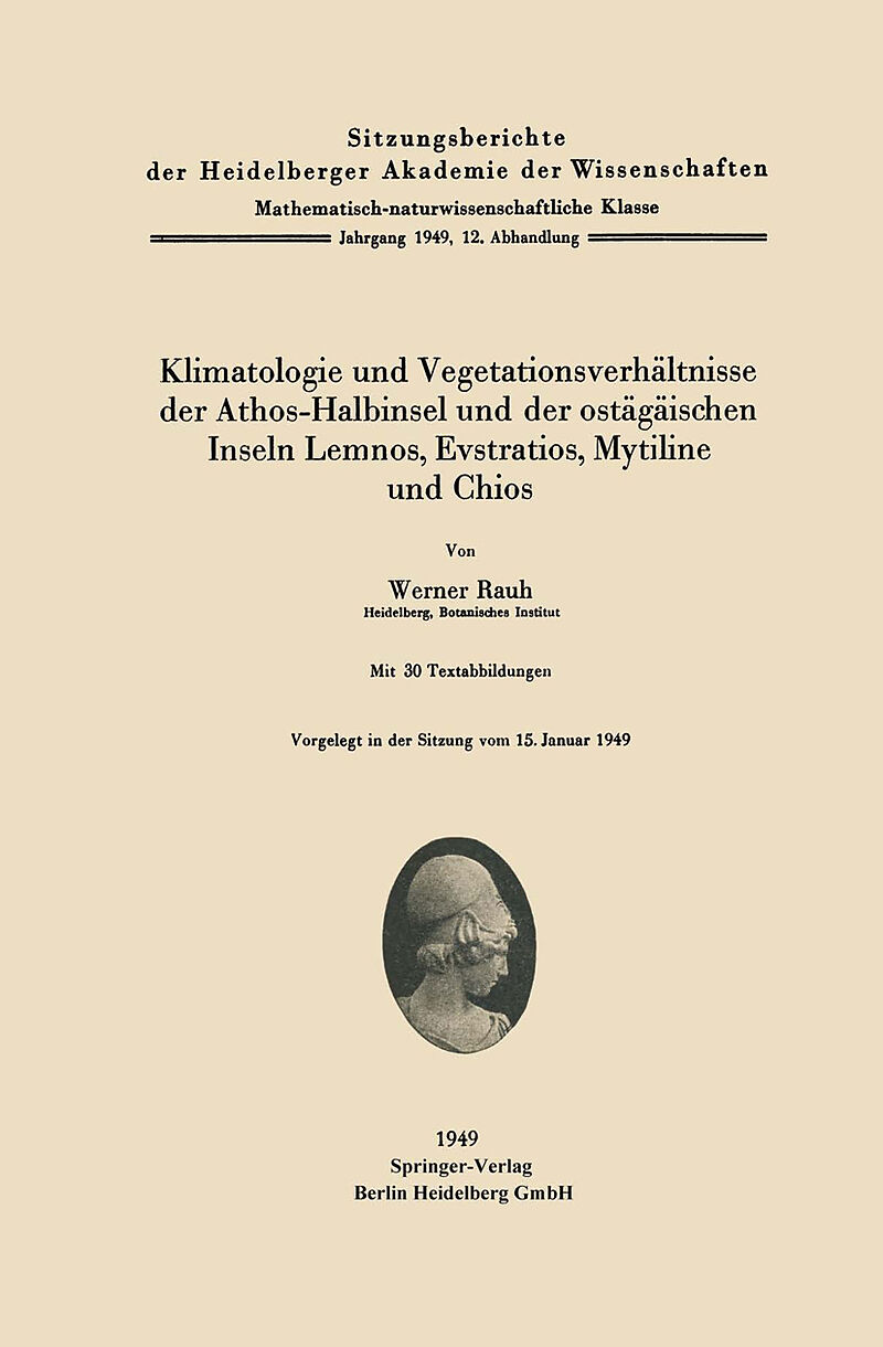 Im Jahre 1942 bot sich mir Gelegenheit, die Halbinsel Chal kidike mit ihrer höchsten Erhebung, demA thos, die nordägäischen Inseln Lemnos, Evstratios, Mytiline und Chios zu besuchen und auf mehreren kürzeren und längeren Fahrten Einblick in die Vegetationsverh...