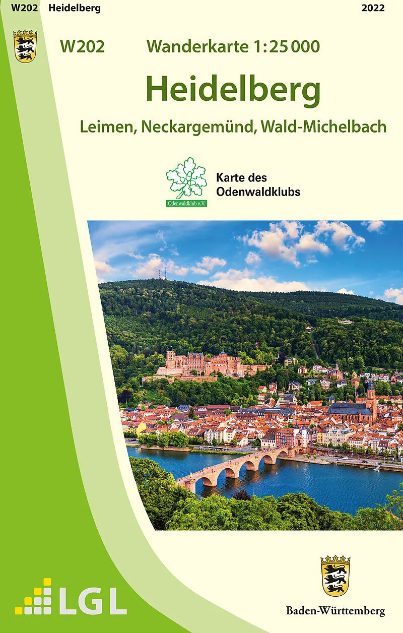 W202 Heidelberg Maßstab 1:25 000 Gebiet: Weinheim, Birkenau, Wald-Michelbach, Gorxheimertal, Abtsteinach, Hirschberg an der Bergstraße, Schriesheim, Dossenheim, Heiligkreuzsteinach, Wilhelmsfeld, Hirschhorn (Neckar), Heidelberg, Neckargmünd, Neckarsteinach, Sc...