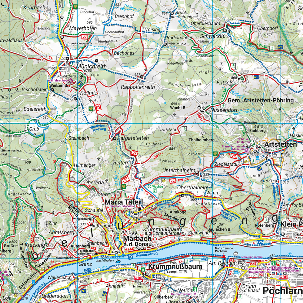 Die Wanderkarte Wachau bietet detaillierte Informationen über die verschiedenen Wander- und Radwege in dieser hügeligen Landschaft mit ihren vielen Tälern. Das Yspertal und der Wetterbesteig sind nur einige der vielen Wanderhighlights in der Region. Informatio...