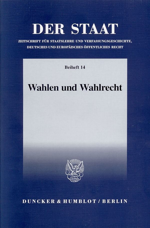 Inhalt: W. Herborn, Wahlrecht und Wahlen im spätmittelalterlichen und frühneuzeitlichen Köln - S. Schmitt, Wahlen zu ländlichen Ämtern - B. Dölemeyer, Wahl oder Ernennung? Zur Diskussion um die Richterwahl in Deutschland im 19. und 20. Jahrhundert - H.-H. Brandt, Neoständische Repräsentationstheorie und das frühkonstitutionelle Wahlrecht - L. Höbelt, Wahlen aus Parlamenten - W. Brauneder, Die Wahl des Staatsoberhaupts in Republiken anhand insbesondere der deutschen und österreichischen Entwicklung