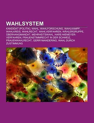 Quelle: Wikipedia. Seiten: 297. Kapitel: Kandidat (Politik), Wahl, Wahlforschung, Wahlkampf, Wahlkreis, Wahlrecht, Wahlverfahren, Wählergruppe, Überhangmandat, Mehrheitswahl, Hare-Niemeyer-Verfahren, Frauenstimmrecht in der Schweiz, Frauenwahlrecht, Gerrymande...