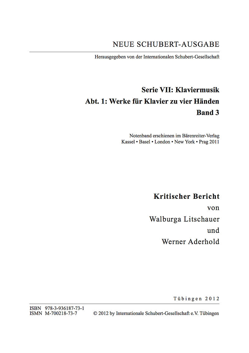 Neue Schubert-Ausgabe. Kritische Berichte / Werke für Klavier zu vier Händen III