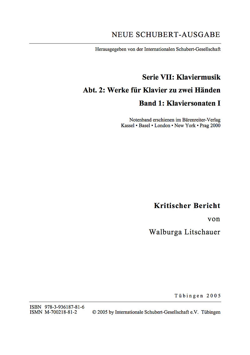 Neue Schubert-Ausgabe. Kritische Berichte / Werke für Klavier zu zwei Händen / Klaviersonaten I