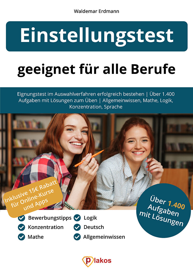 Diese Aufgabentypen sind im Einstellungstest-Buch enthalten: Allgemeinwissen Recht Politik und Gesellschaft Wirtschaft Geografie Interkulturelles Wissen Kunst, Musik und Literatur Technik IT und Elektrotechnik Deutschlandkarte Geschichte Physik Chemie, Biologi...