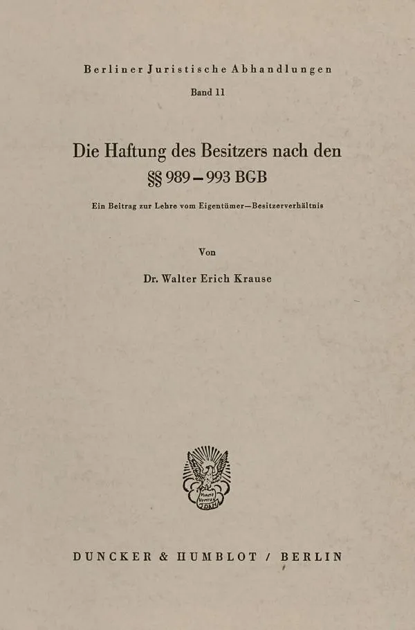Die Haftung des Besitzers nach den §§ 989 - 993 BGB.