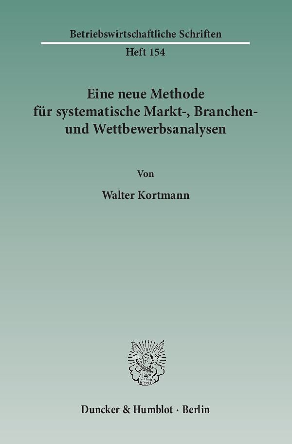 Zwischen dem Bedarf an Analysemethoden für Märkte, Wirtschaftsbereiche und Wettbewerbssituationen und dem, was von seiten der Wirtschaftswissenschaft bisher hierzu an Ansätzen angeboten wird, besteht eine große Diskrepanz. Wirtschafts- und Wettbewerbsforscher,...