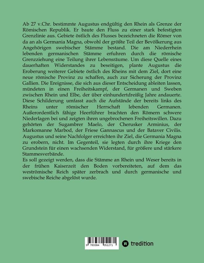 Ab 27 v.Chr. bestimmte Augustus endgültig den Rhein als Grenze der Römischen Republik. Er baute den Fluss zu einer stark befestigten Grenzlinie aus. Gebiete östlich des Flusses bezeichneten die Römer von da an als Germania Magna, obwohl der größte Teil der Bev...