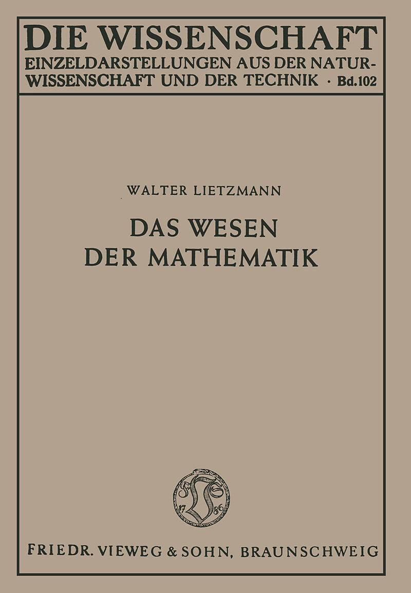 Erstes Kapitel: Die Logik im Aufbau der Mathematik.- 1. Grundbegriffe der Logik.- 2. Der Begriff.- 3. Verhältnisse zweier Begriffe.- 4. Begriffsreihen.- 5. Definitionen.- 6. Einige Forderungen an die Definitionen.- 7. Erweiterung von Definitionen.- 8. Einführung idealer Elemente.- 9. Definitionsfehler.- 10. Namen und Zeichen für Begriffe.- 11. Urteil.- 12. Andere Arten von Urteilen.- 13. Art und Herkunft der Urteile.- 14. Vier logische Grundgesetze.- 15. Unmittelbare Schlüsse.- 16. Mittelbare Schlüsse.- 17. Induktive und deduktive Methode.- 18. Der Beweis.- 19. Beweisfehler.- 20. Notwendige und hinreichende Bedingung und Umkehrung von Lehrsätzen.- 21. Direkte und indirekte Beweise.- 22. Vollständige Induktion.- 23. Unmöglichkeitsbeweise.- 24. Mannigfaltigkeit von Beweisen.- 25. Das Verhältnis von Definition und Lehrsatzgefüge.- 26. Der Aussagenkalkül der Logistik.- 27. Der Funktions- oder Prädikatenkalkül.- Zweites Kapitel: Grundlegung der Geometrie.- 1. Geschichtliche und psychologische Entwicklung.- 2. Grundbegriffe.- 3. Der Begriff Fläche.- 4. Der Begriff der Kurve.- 5. Der Begriff der Länge.- 6. Praktische Erzeugung von Gerade und Ebene.- 7. Arithmetisierung der Geometrie.- 8. Forderungen und Grundgesetze bei Euklid.- 9. Was sind Axiome?.- 10. Vollständigkeit des Axiomensystems.- 11. Die Axiome der Verknüpfung.- 12. Die Unabhängigkeit der Axiome.- 13. Geometrie als Beziehungslehre.- 14. Beispiele von Bildgeometrien.- 15. Ausfallsgeometrie.- 16. Widerspruchslosigkeit.- 17. Die Axiome der Anordnung.- 18. Die Axiome der Verknüpfung und die Wirklichkeit.- 19. Die Axiome der Anordnung und die Wirklichkeit.- 20. Unterschied zwischen Axiomenraum und Sinnenraum.- 21. Die Anschauung.- 22. Trugschlüsse.- 23. Der Begriff der Kongruenz.- 24. Die Gruppe derKongruenzaxiome.- 25. Freiheit in der Wahl der Grundbegriffe.- 26. Parallelenaxiom und nichteuklidische Geometrie.- 27. Die nichteuklidischen Geometrien.- 28. Zerlegungsgleichheit und archimedisches Axiom.- 29. Zerlegungsgleichheit, Ergänzungsgleichheit, Flächengleichheit.- 30. Das Vollständigkeitsaxiom.- 31. Der vierdimensionale Raum.- 32. Die regelmäßigen Polytope im vierdimensionalen Raum.- 33. Polytope im mehrdimensionalen Raum.- 34. Der Weg vom Sinnenraum zur abstrakten Geometrie.- 35. Der Weg von der abstrakten Geometrie zum Sinnenraum.- Drittes Kapitel: Grundlegung der Arithmetik.- 1. Zahl und Zählen.- 2. Die vier Grundrechenarten im Bereiche der natürlichen Zahlen.- 3. Der Bereich der rationalen Zahlen.- 4. Die Rechenoperationen im erweiterten Zahlbereich.- 5. Verbot der Division durch Null.- 6. Widerspruchslosigkeit.- 7. Die Rechenoperationen dritter Stufe.- 8. Die Irrationalzahlen.- 9. Der Dedekindsche Schnitt.- 10. Komplexe Zahlen.- 11. Axiome der Arithmetik.- 12. Unabhängigkeit der Axiome.- 13. Zurückführung auf Axiome für die natürlichen Zahlen.- 14. Peanos Axiomensystem für natürliche Zahlen.- 15. Peanos Axiomensystem in Begriffsschrift.- 16. Die vollständige Induktion.- 17. Der Begriff der Menge.- 18. Begriff der Äquivalenz.- 19. Äquivalenzuntersuchungen.- 20. Die reellen Zahlen sind nicht abzählbar.- 21. Kontinuumsuntersuchungen.- 22. Mengen, die weder abzählbar noch Kontinuum sind.- 23. Transfinite Zahlen.- 24. Paradoxien der Mengenlehre.- 25. Geordnete Mengen.- 26. Ähnlichkeit geordneter Mengen.- 27. Vom Rechnen mit Ordnungstypen.- Viertes Kapitel: Grundlegung der Analysis.- 1. Unendlich als Anzahlbezeichnung.- 2. Naive Benutzung von Grenzwerten.- 3. Unendliche Folgen.- 4. Das Rechnen mit Grenzwerten.- 5. Die Irrationalzahl.- 6.Unendliche Reihen.- 7. Die Veränderliche.- 8. Die Funktion.- 9. Grenzwerte von Funktionen.- 10. Stetigkeit.- 11. Differenzierbarkeit.- 12. Differentiale.- 13. Flächeninhalt und Integral.- 14. Rauminhalt, Cavalierisches Prinzip, Grenzübergang.- 15. Bestimmtes und unbestimmtes Integral.- 16. Fortschreitender Abstraktionsprozeß in der Mathematik.- 17. Begriffliche Vereinheitlichung in der Mathematik.- Fünftes Kapitel: Mathematik und Erkenntnislehre.- 1. Fragen an die Philosophie.- 2. Der Logismus.- 3. Der Empirismus.- 4. Der Formalismus.- 5. Mathematik und Forschung.- 6. Mathematik und Lehre.- 7. Der Kritizismus.- 8. Der Konventionalismus.- 9. Der Intuitionismus.- 10. Angewandte Mathematik.- 11. Mathematik und Erziehung.