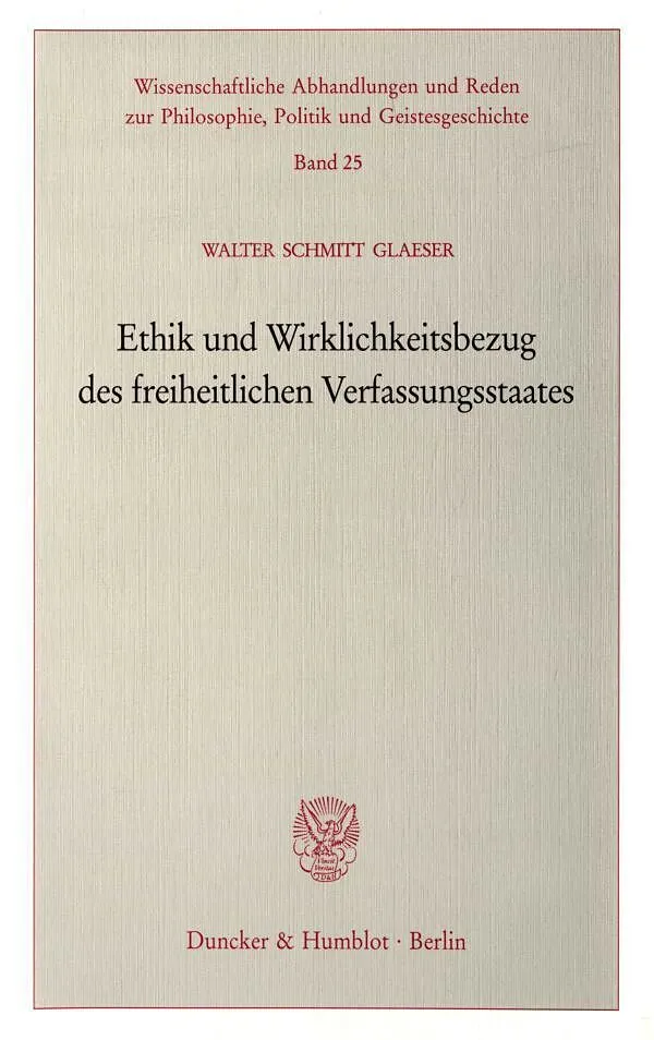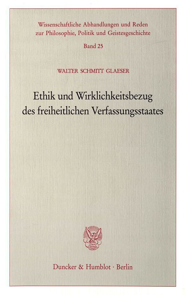 Auf der Basis von Frieden und Sicherheit besteht die Ethik des freiheitlichen Verfassungsstaates in der Ermöglichung und dem Schutz gleicher Freiheit. Um diese Ethik ist es schlecht bestellt, weil die Freiheit zunehmend als Freiheit zur Beliebigkeit mißverstan...