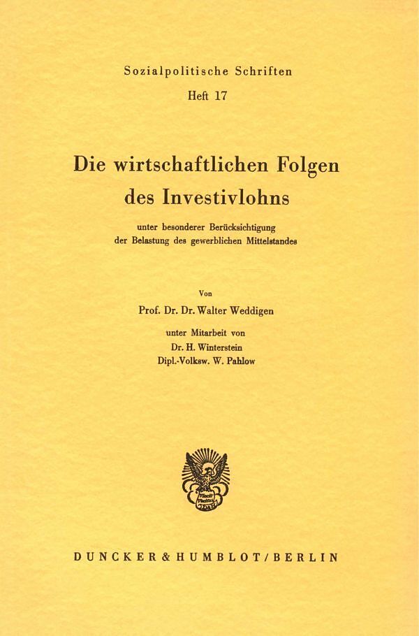 Die wirtschaftlichen Folgen des Investivlohns unter besonderer Berücksichtigung des gewerblichen Mittelstandes.