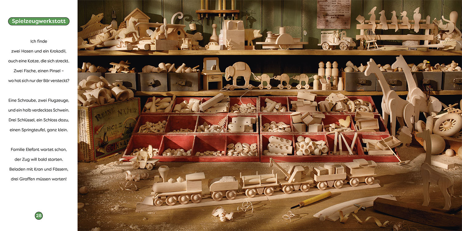 Welche Fahrzeuge sind hier unterwegs? Liebevoll gestaltete Fotosuchbilder laden auf Doppelseiten zum Entdecken ein. Kleine Rätsel in Reimform geben Hinweise auf die gesuchten Fahrzeuge. Erkunden, beobachten und erzählen so werden Konzentration und Sprachvermög...