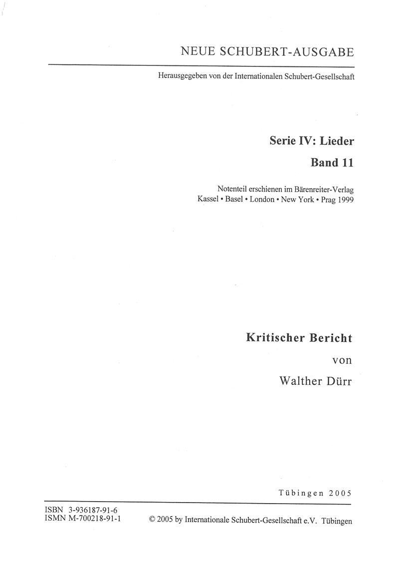 Neue Schubert-Ausgabe. Kritische Berichte / Lieder 11