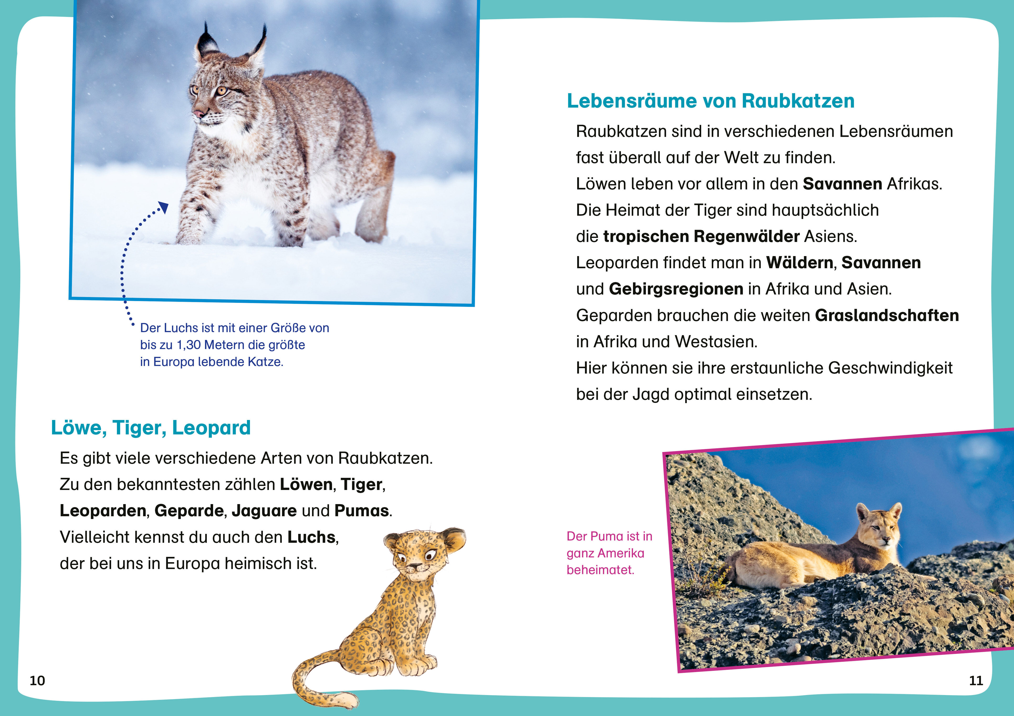 Lesen lernen mit coolen Raubkatzen! Löwen, Tiger, Geparden und weitere spannende Raubkatzen helfen beim Verbessern der Lesekompetenz. Sachtexte liefern spannende Infos über das Leben der Tiere. Lebensräume, Speisepläne, Jagdtechniken und der Nachwuchs werden i...