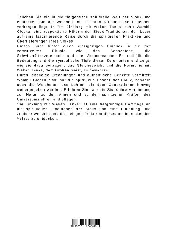 Tauchen Sie ein in die tiefgehende spirituelle Welt der Sioux und entdecken Sie die Weisheit, die in ihren Ritualen und Legenden verborgen liegt. In "Im Einklang mit Wakan Tanka" führt Wambli Gleska, eine respektierte Hüterin der Sioux-Traditionen, den Leser a...