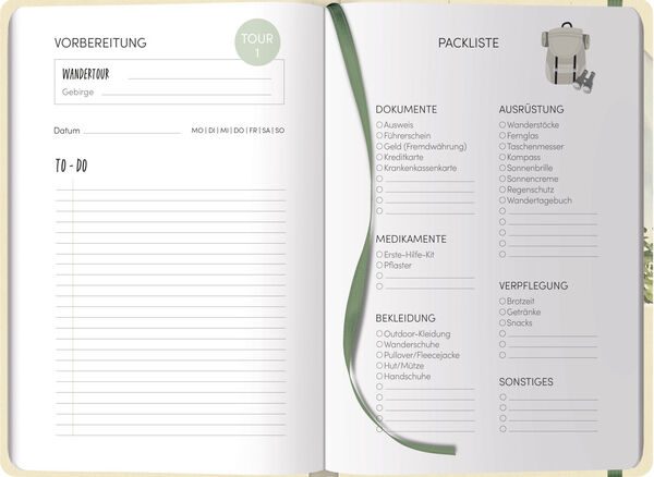 ·Tagebuch Format 13,0 x 19,0 cm ·160 Seiten ·100 g umweltfreundliches FSC Papier ·Nachhaltig mit veganen Materialien produziert ·In edler Leinenstruktur ·Das Eintragbuch für 19 Touren, zum Ausfüllen ·mit Lesebändchen und Gummiband Klappentext agebuch Format 1...