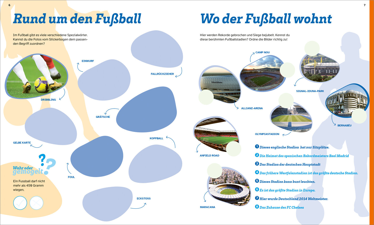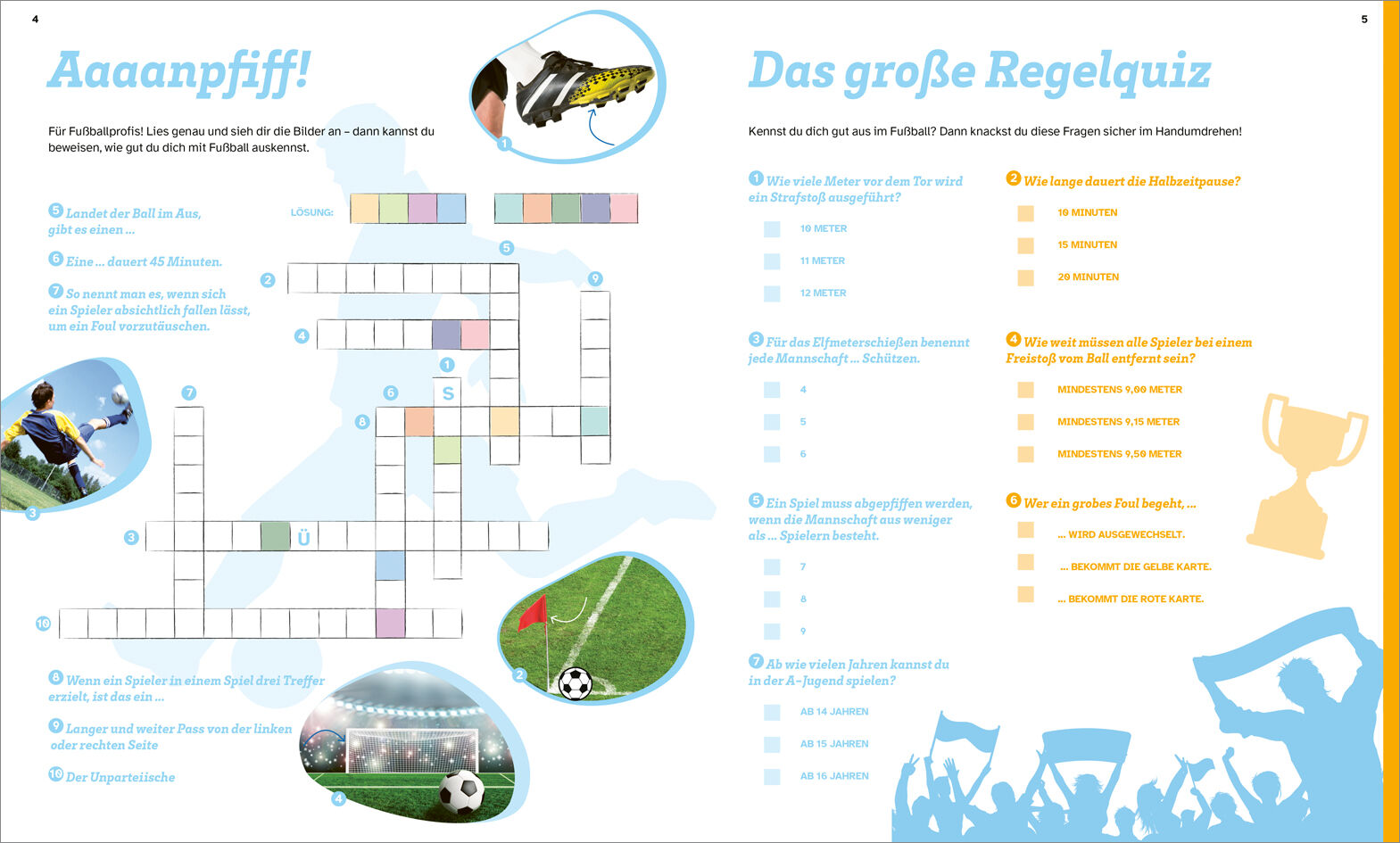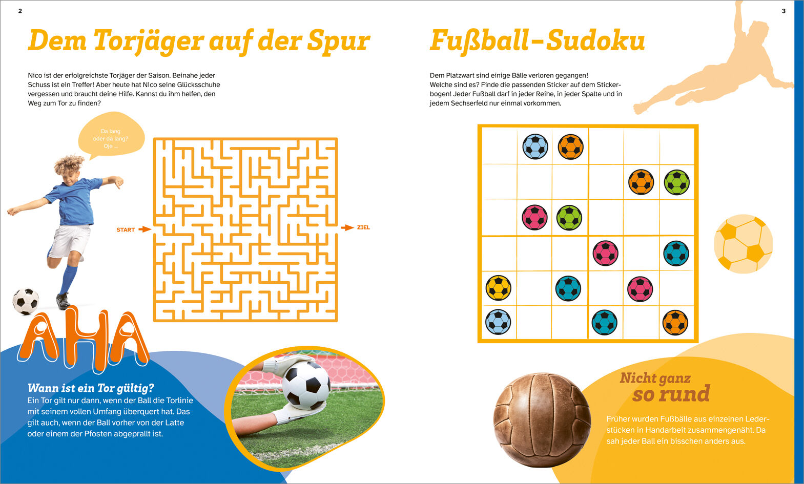 Abseits oder nicht? Welche bekannten Namen verstecken sich im Buchstabengitter? Und wer kennt die Fußballstars und kann den passenden Fußballern jeweils zum richtigen Steckbrief verhelfen? Buchstaben- und Logik-Rätsel, Labyrinthe und Quizfragen das WAS IST WAS...