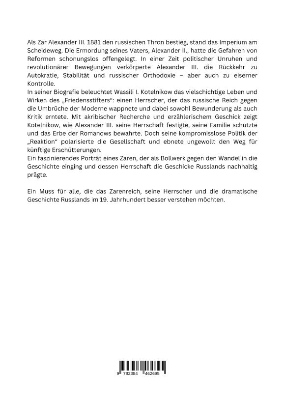Als Zar Alexander III. 1881 den russischen Thron bestieg, stand das Imperium am Scheideweg. Die Ermordung seines Vaters, Alexander II., hatte die Gefahren von Reformen schonungslos offengelegt. In einer Zeit politischer Unruhen und revolutionärer Bewegungen ve...