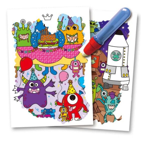 Wie von Zauberhand erscheinen plötzlich freche Monster und Aliens auf dem großen Spiralbuch. Wie das funktioniert? Ganz einfach: Die 6 verschiedenen, wiederverwendbaren Bilder werden mit dem speziellen Wasserstift bemalt und schon kommt die versteckte Illustra...