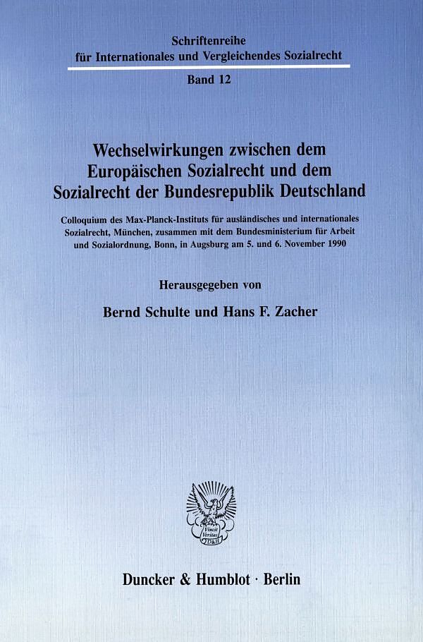 Autorentext Hans F. Zacher is Director emeritus of the Max-Planck-Institute for Foreign and International Social Law, Munich. He is a former President of the Max-Planck-Society and has been awarded honorary doctorates and prizes. He is also Honorary President ...