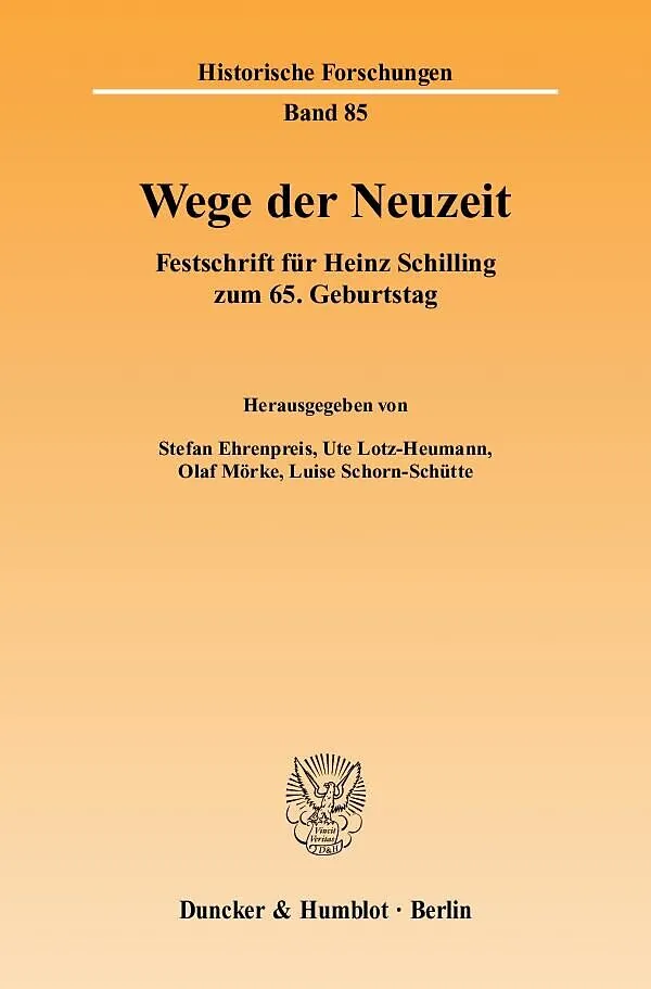 Wie nur wenige hat der an der Berliner Humboldt-Universität lehrende Historiker Heinz Schilling Gegenstände und Methodik der Frühneuzeitforschung geprägt. Die einflussreichen Studien, die er zu Konfessionalisierung und Sozialdisziplinierung, zur Geschichte der Stadt und zur Entstehung des internationalen Systems vorgelegt hat, spiegeln sich in dieser internationalen Festschrift anlässlich seines 65. Geburtstags wider. Das Wirken des Jubilars für die deutsche und europäische Geschichtswissenschaft zur Frühen Neuzeit und seine internationale Reputation werden in 30 Beiträgen von Autoren aus Europa und den USA dokumentiert. Die um die Themenkreise "Reformation und Konfession" sowie "Politik, Staat und internationales System" gruppierten Aufsätze greifen Schwerpunkte der Forschung zum 16. und 17. Jahrhundert auf und fragen nach den langfristigen "Wegen der Neuzeit".