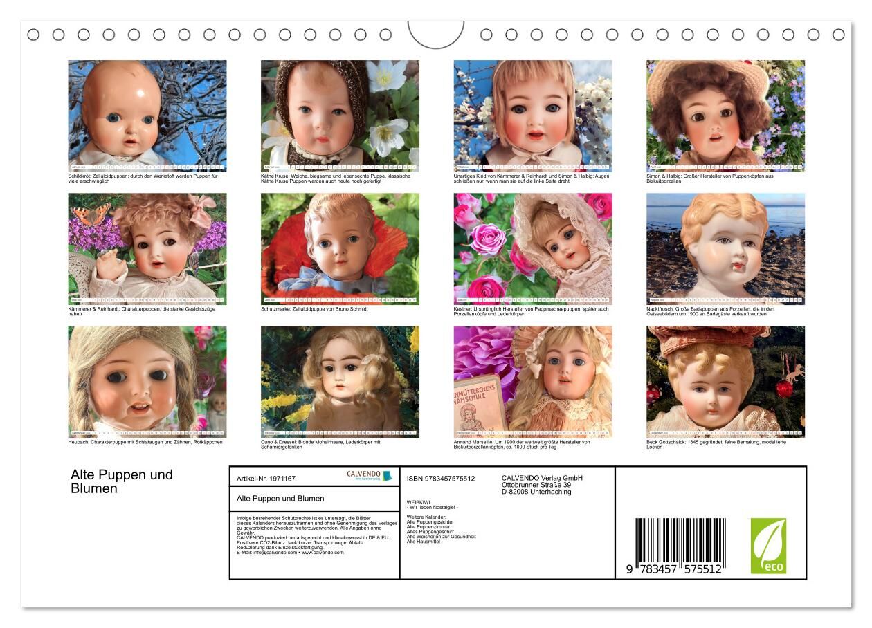 Alte Puppen berühren! Dieser Kalender zeigt ausdrucksstarke Gesichter bekannter nostalgischer Puppenmarken aufgenommen vor romantischer Natur. Lassen Sie sich verzaubern! Ein Kalender nicht nur für Liebhaber und Sammler von alten Puppen und altem Spielzeug.