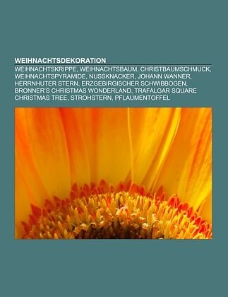 Quelle: Wikipedia. Seiten: 39. Kapitel: Weihnachtskrippe, Weihnachtsbaum, Christbaumschmuck, Weihnachtspyramide, Nussknacker, Johann Wanner, Herrnhuter Stern, Erzgebirgischer Schwibbogen, Bronner s Christmas Wonderland, Trafalgar Square Christmas Tree, Strohst...
