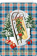 Hochwertige Grußkarte mit Stoffbezug und weihnachtlichem Anhänger und glänzender Goldfolienveredelung für besonders festliche Grüße.