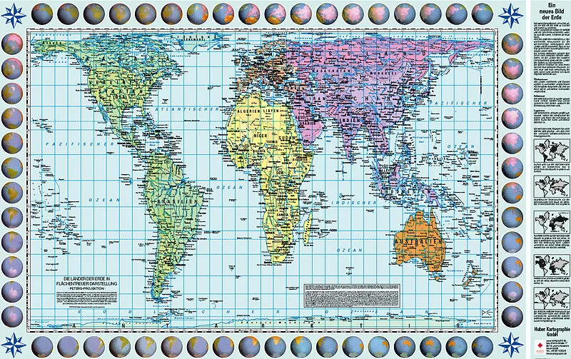 Poster Weltkarte Petersprojektion, deutsch (ca. 82,5 x 52,3 cm) Die Peters Weltkarte wird in zwei Größen angeboten: 130 cm x 82cm und etwas kleiner in 82,5 cm x 52,3 cm (diese Version). Außerdem in drei Sprachen: Deutsch, Englisch und Französisch sowie jeweils...