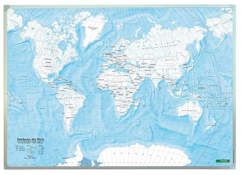 Diese besondere Weltkarte ist ideal geeignet um bereits vergangene oder geplante Reisen darzustellen. Länder sind weiß, Gewässer blau und Ländergrenzen schwarz eingezeichnet. Die Länder können nach eigenem Geschmack ausgemalt, beklebt oder individuell gestalte...