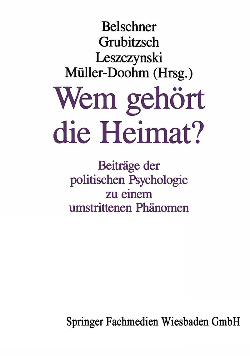 Über die scheinbare Selbstverständlichkeit eines Gegenstandes Wem gehört die Heimat in Politik und Politischer Psychologie?.- Über die scheinbare Selbstverständlichkeit eines Gegenstandes Wem gehört die Heimat in Politik und Politischer Psychologie?.- Theoretische Perspektiven: Heimat und Politische Psychologie.- Wem gehört die Heimat?.- Zum Problem des Politischen in einer Politischen Psychologie.- Geschichtlichkeit und Perspektivität von Heimat: Struktur und Funktion einer Orientierung auf Heimat, der kulturelle Gestaltungsprozeß von Heimat und seine Grenzen.- Heimat und Kontinuität Von der Heimat zu dem Ort, worin noch niemand war.- Nun Ade, du mein lieb Heimatland Überlegungen zur Heimat als Grenzbegriff.- Heimat als ein Resultat von Sozialisation Versuch einer nicht-ideologischen Bestimmung.- Heimat in ökopsychologischer Sicht.- Anmerkungen zum Heimatbegriff.- Gerechte Heimat für alle?.- Heimat als Gefahr? Probleme der Regionalentwicklung im Ruhrgebiet.- Regionalbewußtsein als regionale, kollektive Identität.- Vom Nationalstaat zum demokratischen Verfassungsstaat: Kollektive Identitätsbildung unter den Bedingungen vielfältiger Lebensformen und universalistischer Prinzipien.- Nur neue Innerlichkeit oder: Ein radikalisiertes Bedürfnis nach Heimat.- Über kollektive Identifizierungen: die Nation.- Die Verwestlichung der Bundesrepublik durch die 45er- und durch die 68er-Generation.- Heimat und Familie in der Erinnerung prominenter Zeitgenossen: Eine Studie zur Anthologie Mein Elternhaus von Rudolf Pörtner.- Heimatlosigkeit und die Flüchtigkeit der Bilder.- Zentraler Sachzwang regionale Emanzipation und Widerstand: Heimat zwischen politischer Machtsicherung und Autonomie regionaler Lebensgestaltung.- Mut zurHeimat? Strukturmomente konservativer und rechtsradikaler Heimatvorstellungen.- Heimatliebe, Patriotismus, Internationalismus.- Frühe Kritik von Links am sowjetrussischen Zentralismus.- Psychologie: fern der Heimat nah dem Menschen.- Kulturelle Identität und die subjektive Verarbeitung historischer Ereignisse.- Sinti und Roma in Ostwestfalen-Lippe Zur Heimatgebundenheit und permanenten Vertreibung einer ethnischen Minderheit.- Psychosomatische Erkrankungen im Zusammenhang mit Migration.