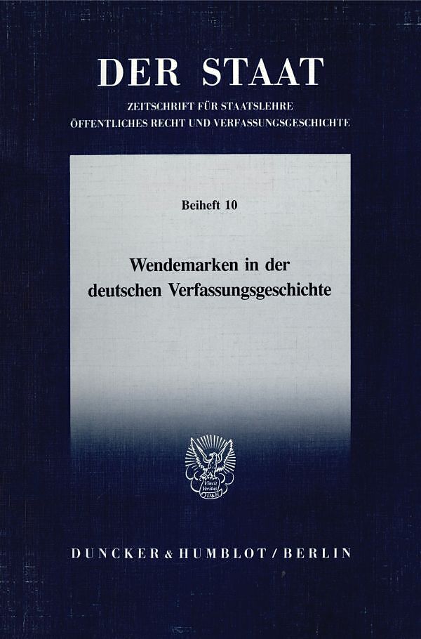 Spätestens seit Goethes Kommentar zur Kanonade von Valmy »Von hier und heute geht eine neue Epoche der Weltgeschichte aus« gehört die »historische Wendemarke« zu den Standard-Metaphern der Geschichtsschreibung. In der Verfassungsgeschichte erfreut sie sich bes...