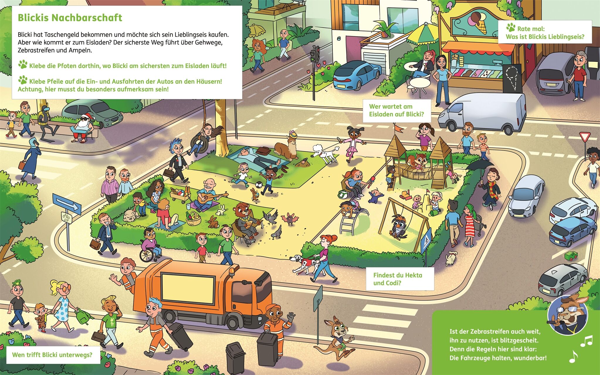 Sicher im Straßenverkehr mit Känguru Blicki • Das Wimmelbuch der erfolgreichen Verkehrsinitiative Blicki blickt's für Kinder ab 4 Jahren • Den Straßenverkehr meistern mit Kanguru Blicki und seinem coolen Team • Für Grundschule und Kindergarten:...