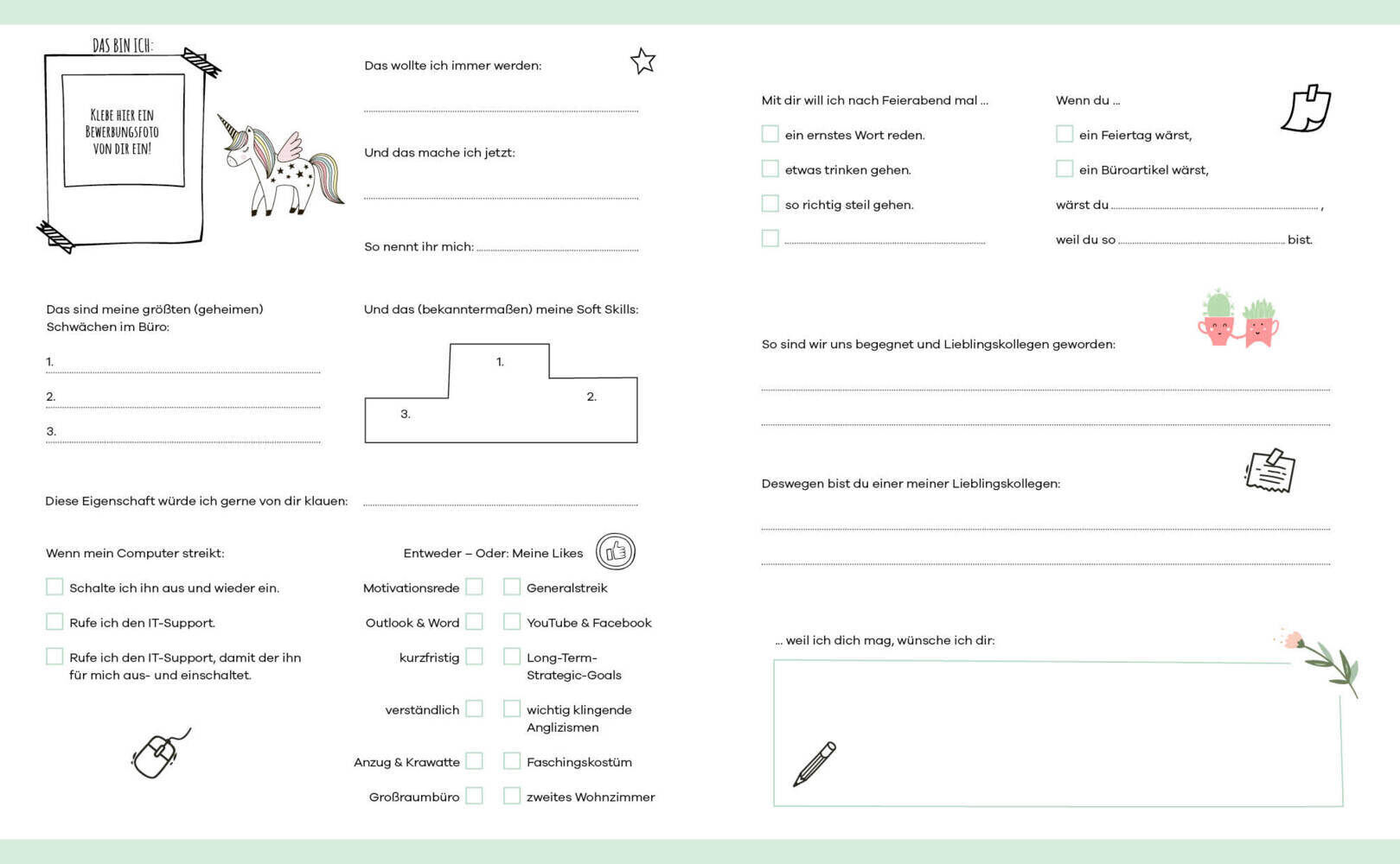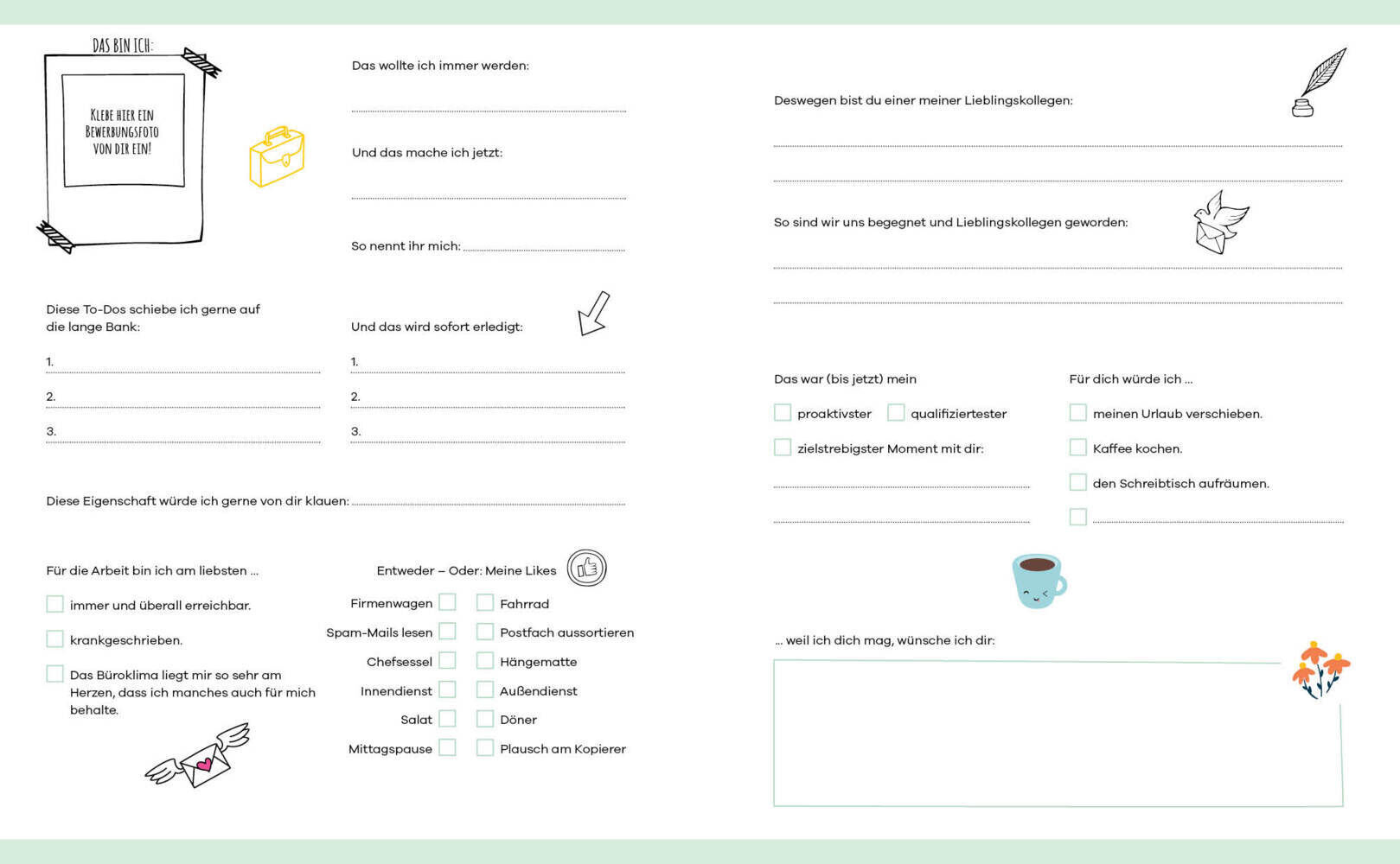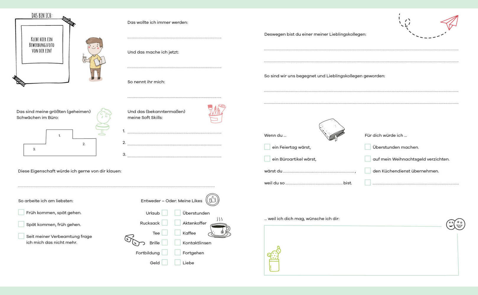 Zum Ausfüllen, Ankreuzen und Einkleben ein ganz besonderes Album für die besten Kollegen auf der Welt. Was wäre der Job ohne Lieblingskollegen? In diesem schön gestalteten Eintragalbum können Erinnerungen an das Team, besondere Erlebnisse und lustige Büro-...