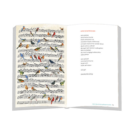 Lauter beflügelnde Botschaften sind hier versammelt gute Wünsche und Impulse, ob gesungen, gezwitschert oder gerufen. Sie alle legen einem das Glück zu Füßen. Anschließend kann man sich dann inspirieren lassen von Theodor Fontane: Immer die kleinen Freuden auf...