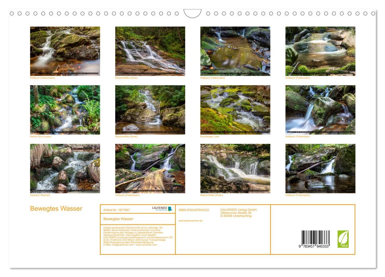Wasser ist Leben. Dieser Kalender ist der ideale Wandschmuck für alle Liebhaber von Natur, Bächen und Wasser im allgemeinen. Die 12 kunstvoll arrangierten Fotografien vermitteln den Eindruck man müsste nur die Bilder nur anfassen um die kühlende Wirkung von fl...