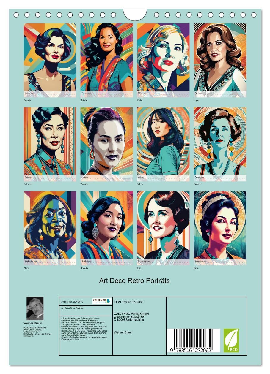 Art Deco Retro Porträts (Wandkalender 2026 DIN A4 hoch), CALVENDO Monatskalender