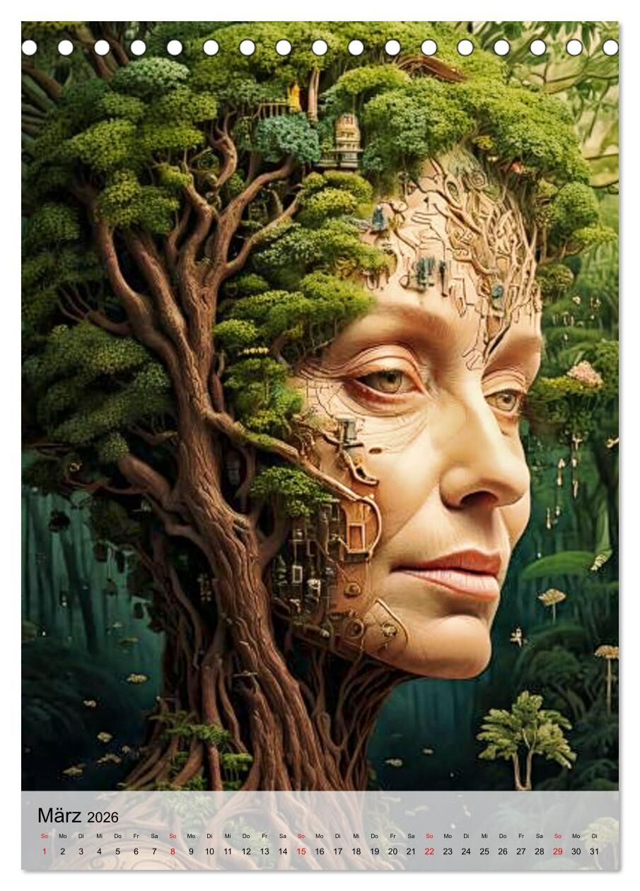 In Mythen und Legenden werden Bäume oft als Individuen dargestellt. Diese Annahme ist Programm unseres Bildkalenders, der zwölf Bilder zeigt, die auf surrealistische Art Gesichter mit Bäumen verbinden. Die Bilder sind mit Hilfe von künstlicher Intelligenz ents...