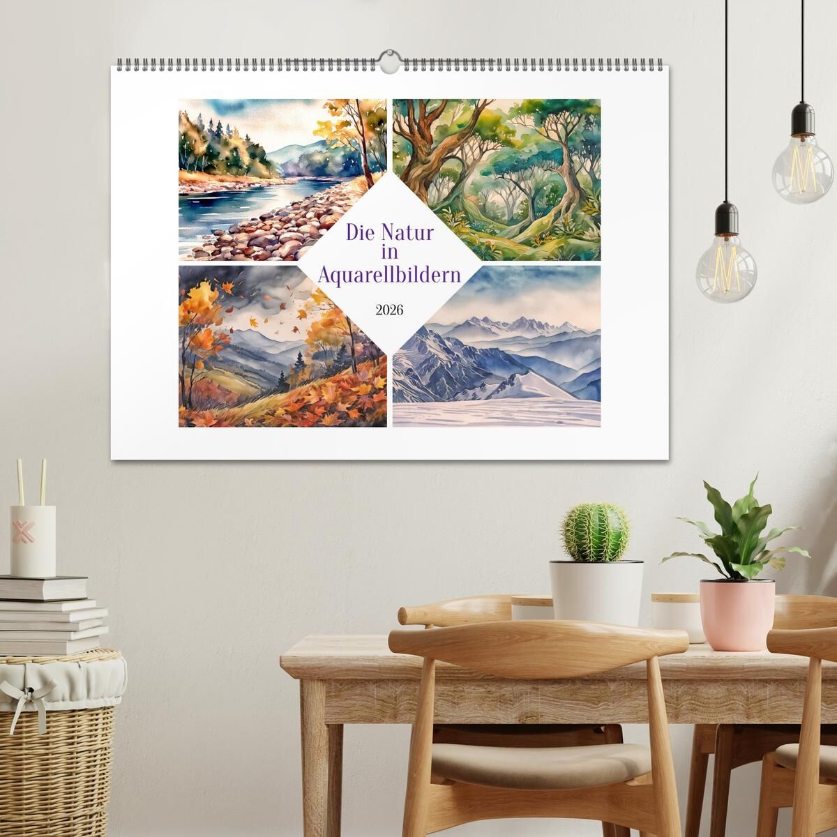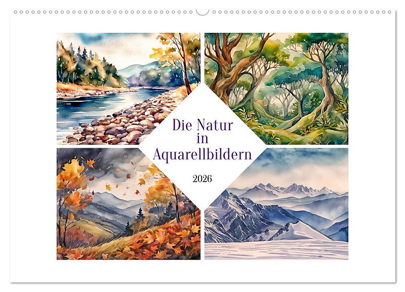 Die Natur in Aquarellbildern (Wandkalender 2026 DIN A2 quer), CALVENDO Monatskalender