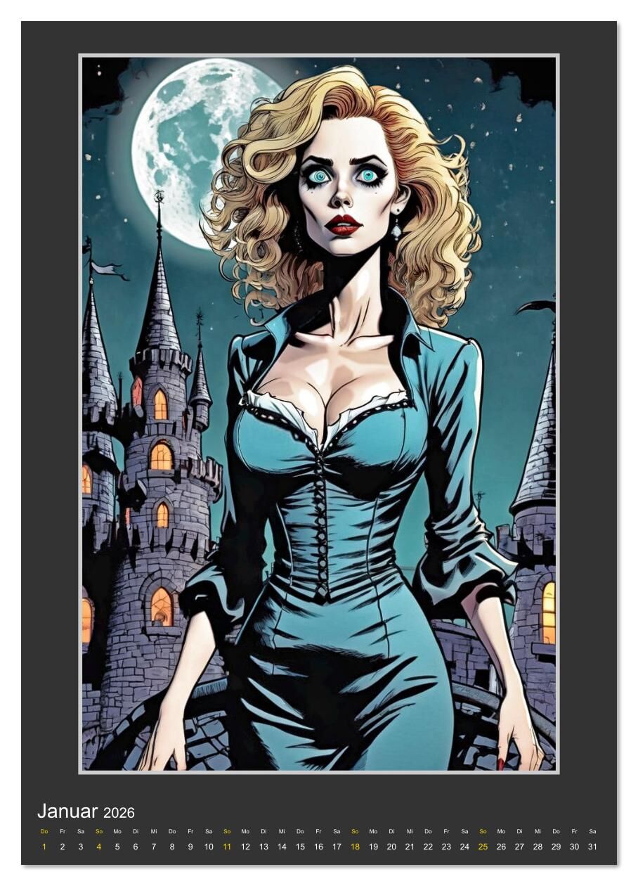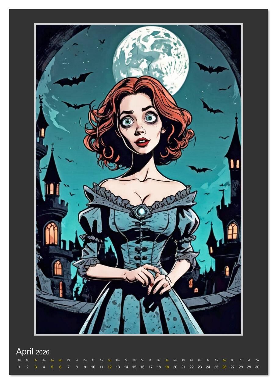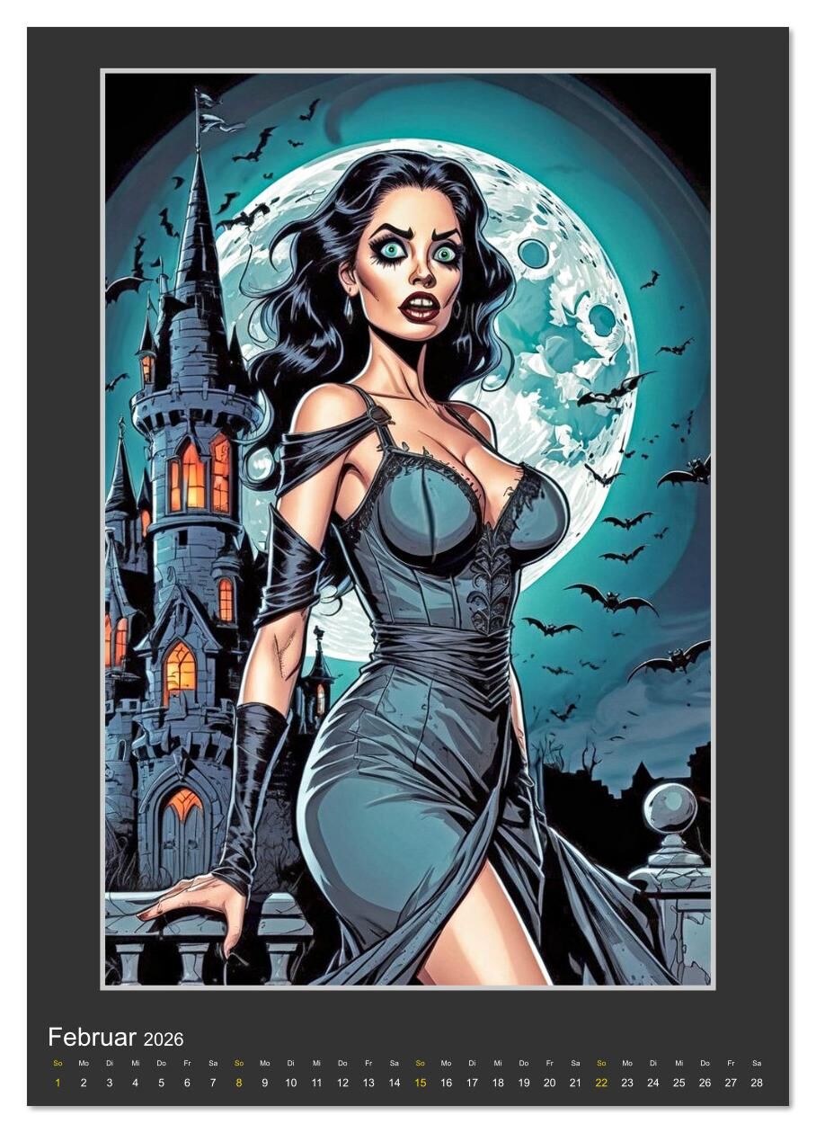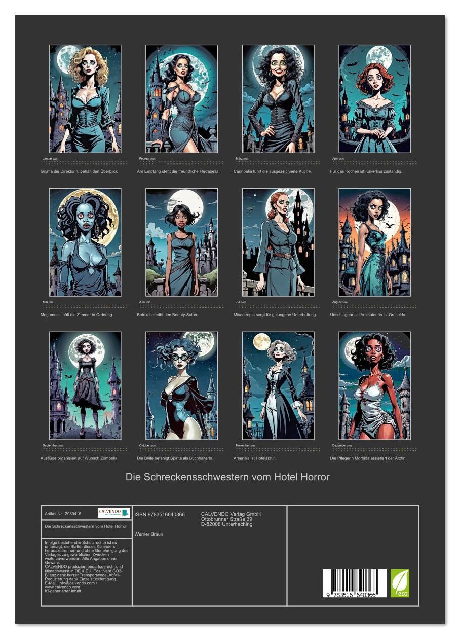 Die Schreckensschwestern vom Hotel Horror (hochwertiger Premium Wandkalender 2026 DIN A2 hoch), Kunstdruck in Hochglanz