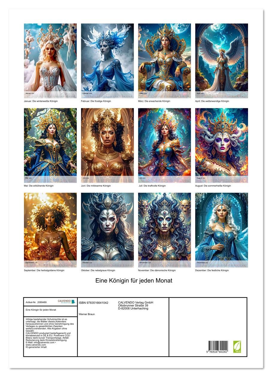 Lassen Sie sich betören vom Zauber und Glamour der atemberaubenden Geschöpfe aus diesem Kalender der Königinnen. Jeden Monat besucht Sie eine andere Königin, geschmückt mit jahreszeitgemäßen Attributen. Ein ganzes Jahr in solch edler Gesellschaft kann nur ein ...