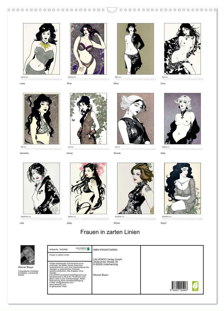 Frauen in zarten Linien (Wandkalender 2026 DIN A2 hoch), CALVENDO Monatskalender