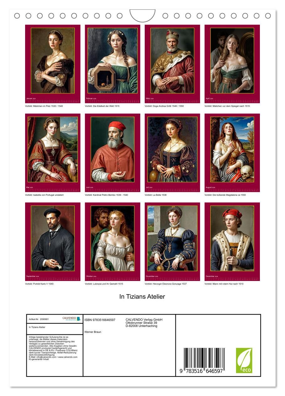 Der Venezianer Tizian steht als bildender Künstler wie ein strahlender Stern am Himmel der Hochrenaissance. Dieser Kalender ist eine Hommage an diesen Künstler als Werkstattbesuch in seinem Atelier. Wir treffen dort einige seiner Modelle. Das sind einerseits j...